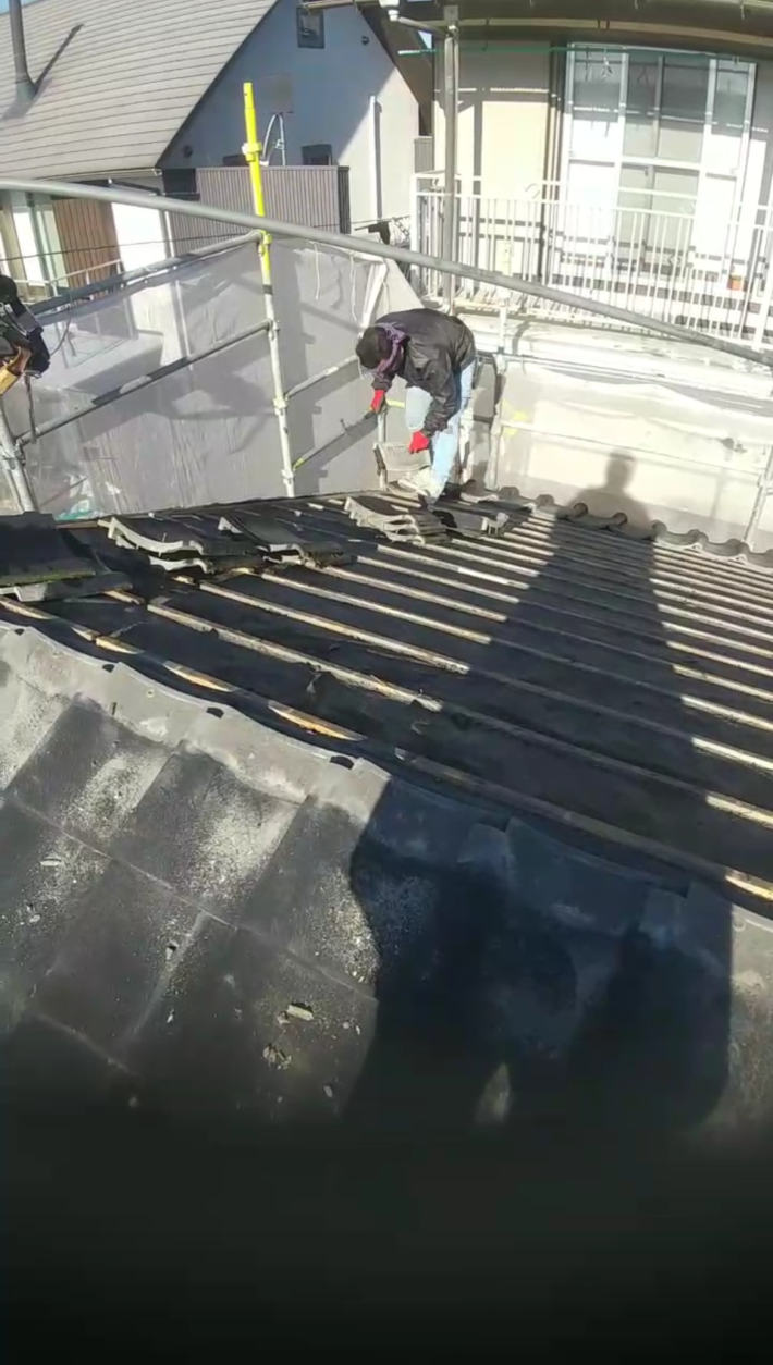 雨漏りのリスクを防ぐため、既存の屋根材を丁寧に撤去し、新しい瓦へと葺き替えました。