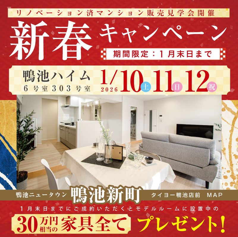 【鹿児島市】2026/1/10㈯・11㈰・12㈰ 新春鴨池ハイム6-303販売見学会