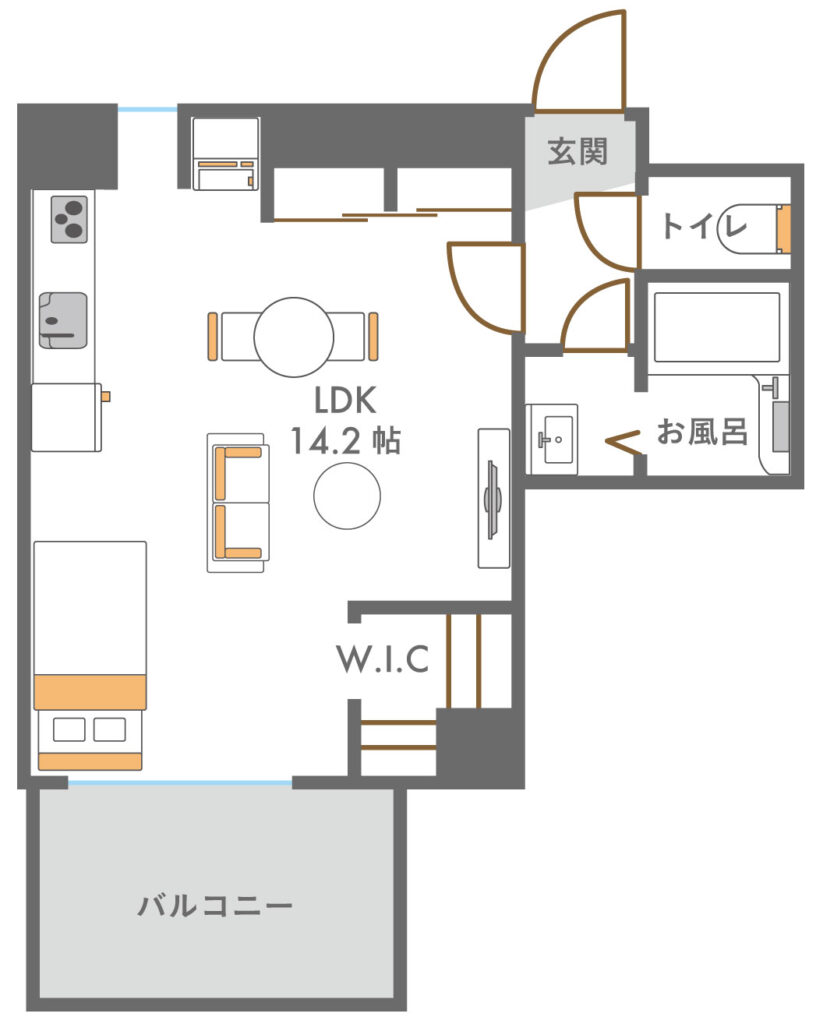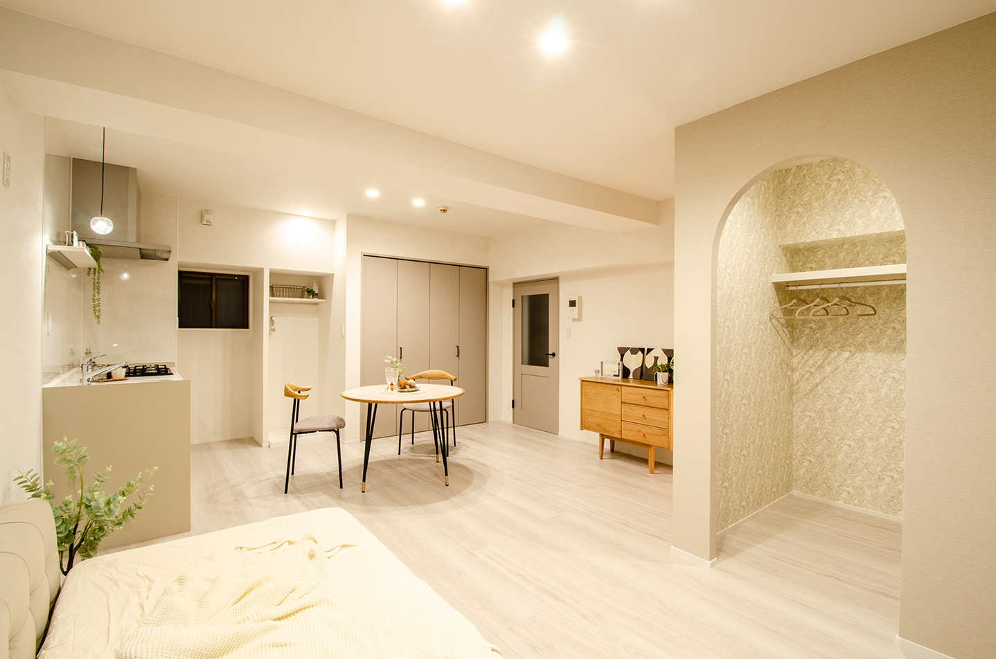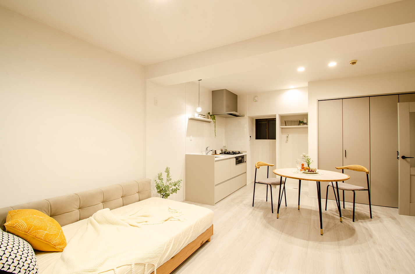 福岡・薬院という、都心でありながら落ち着いた空気も感じられる人気エリアに位置するこの住まいは、天神や博多へもスムーズにアクセスでき、仕事もプライベートも軽やかに楽しみたい大人の暮らしにちょうどいい立地が魅力です。室内はフルリノベーションによって、水回りをすべて一新し、清潔感と使い勝手を兼ね備えた空間へと刷新。ワンルームならではの開放感を活かしながら、生活動線を丁寧に整理することで、ひとつの空間の中に「くつろぐ」「眠る」「身支度をする」といった日常のシーンが心地よく収まる住まいを実現しました。収納面ではウォークインクロゼットを設け、衣類や荷物をまとめて収めることで、室内はいつもすっきりとした印象に。お気に入りの家具や照明が映える余白が生まれ、自分らしいインテリアを楽しみながら暮らすことができます。薬院の街を日常使いしながら、帰ってくるたびにほっとできる場所がある——立地・デザイン・機能性のバランスが取れたこの一室は、「都心に住む」という選択を、ただ便利なだけで終わらせない、これからの暮らしを豊かに育ててくれる住まいです。
